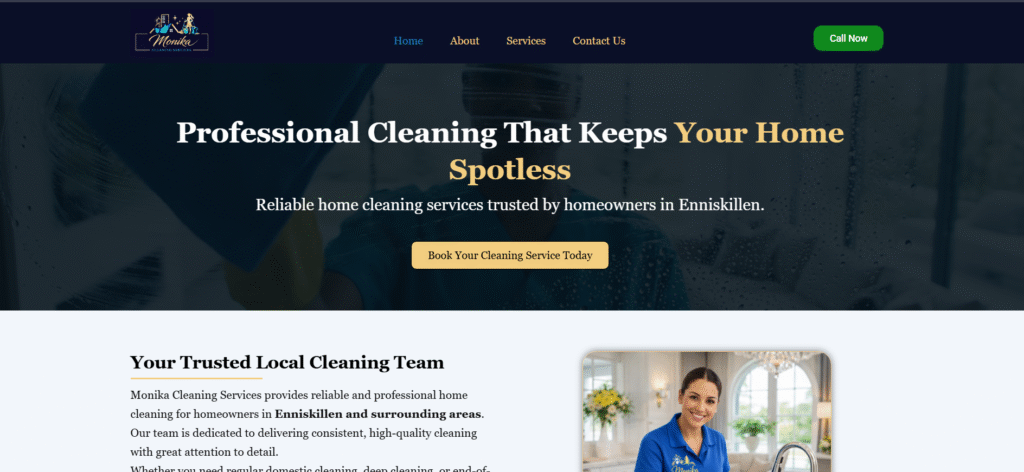 A professional cleaning service website built to establish trust and generate local customer enquiries in Enniskillen.